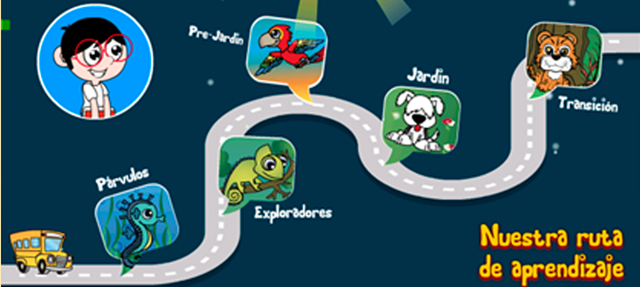 Pre jardín 3 a 4 años: Exploradores A medida que los niños van creciendo aumentan su curiosidad por todo aquello que les rodea. Desarrollando habilidades motrices, socio afectivas, cognitivas, de conexión lógica, perceptuales de lenguaje y reconocimiento de grafías. Fortalecimiento mente, cuerpo y espíritu. Lo que les permitirá ingresar con éxito a la etapa pre-operacional y de comprensión lectora.